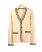 Viscose Nylon V-Neck Long Sleeve Jacket w/ Jacquard Tipping